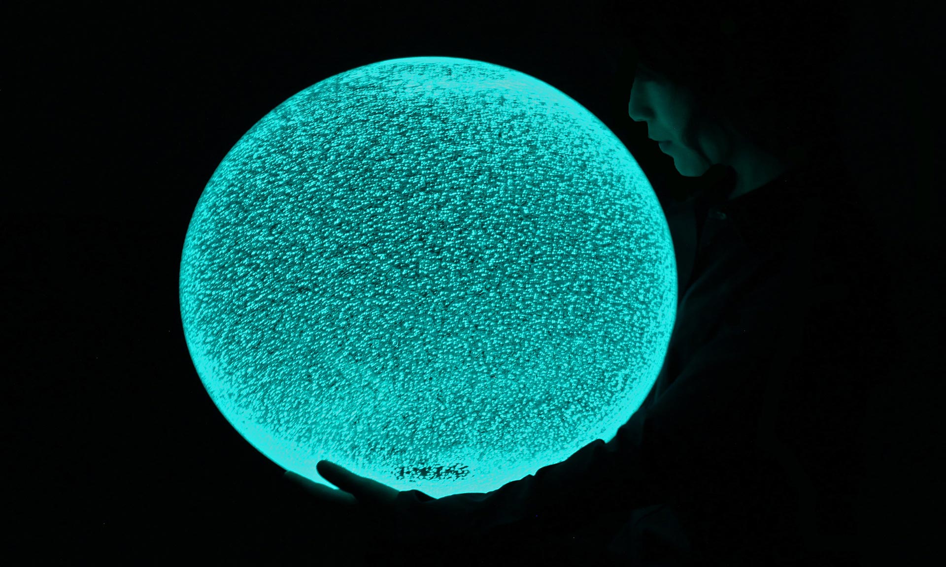 Japonská designérka a výtvarnice Rui Sasaki se zaměřuje hlavně na tvorbu se sklem, ale i dalších materiálů. Její nejvýraznější sérií jsou kolekce z uranového skla, která pod UV zářením svítí. designérka k němu však přidala drobné bublinky, které normálně v ručním foukání jsou označovány za kazy. V množství stovky až tisíce jsou zdobným prvkem.